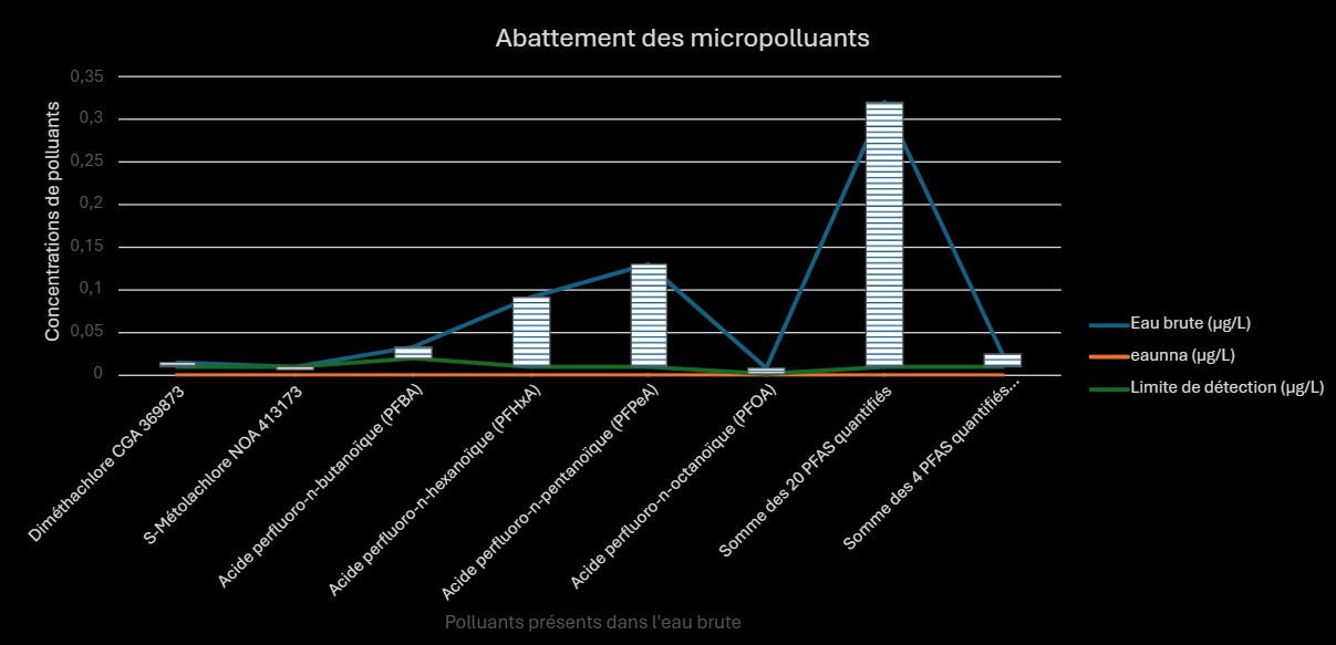 Résultat : 100% des micropolluants pouvant être présents dans l'eau ont été éliminés, confirmant la robustesse du système.